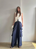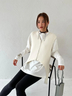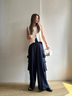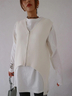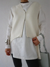 裾のガーターベルトディティールが一気に今季らしい印象にしてくれるニットジレ。