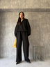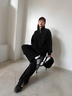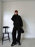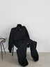 上下SETにインナーレイヤードスタイルがおすすめ。あえて足元をブーツやヒールにすることでトレンド感あるスタイリングが叶います。